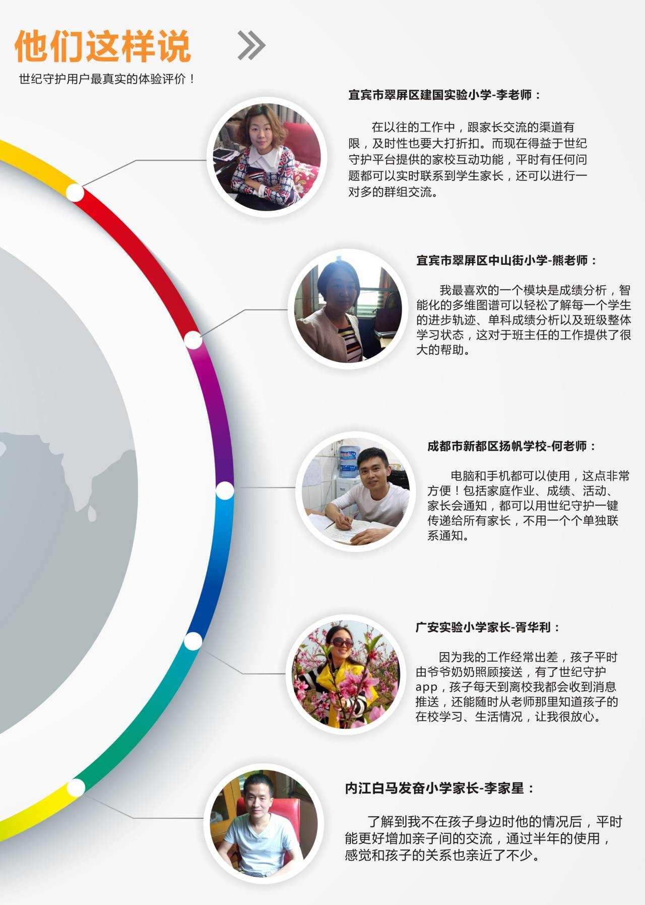 2015年3月到2017年初,經(jīng)過將近兩年的運營,形成以四川為核心輻射全國的戰(zhàn)略版圖。根據(jù)最新統(tǒng)計數(shù)據(jù),至2017年1月,已有來自全國128個城市、1503所學校、108萬的老師和家長樂于使用世紀守護平臺,并獲得了多個學校的好評。目前,世紀守護公司已在上海、重慶、陜西等城市開設分支機構,加速全國布局。