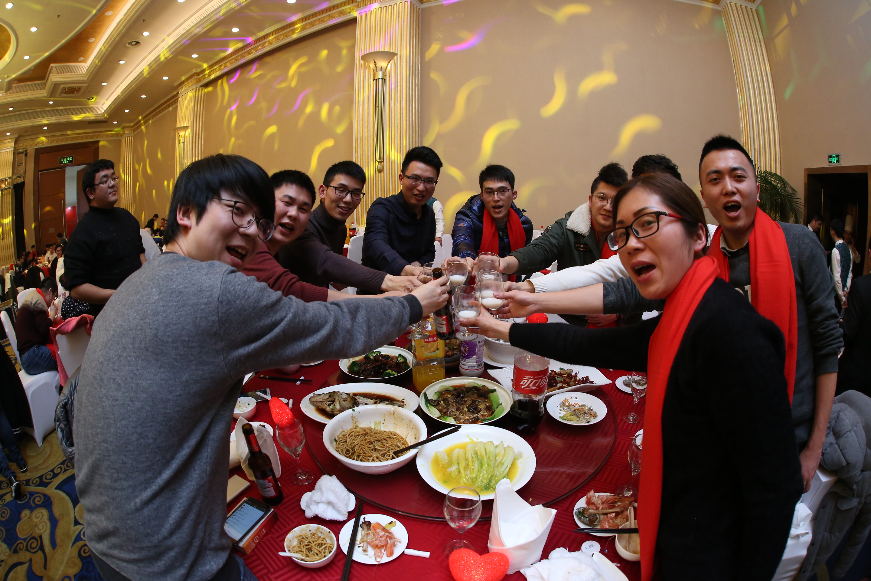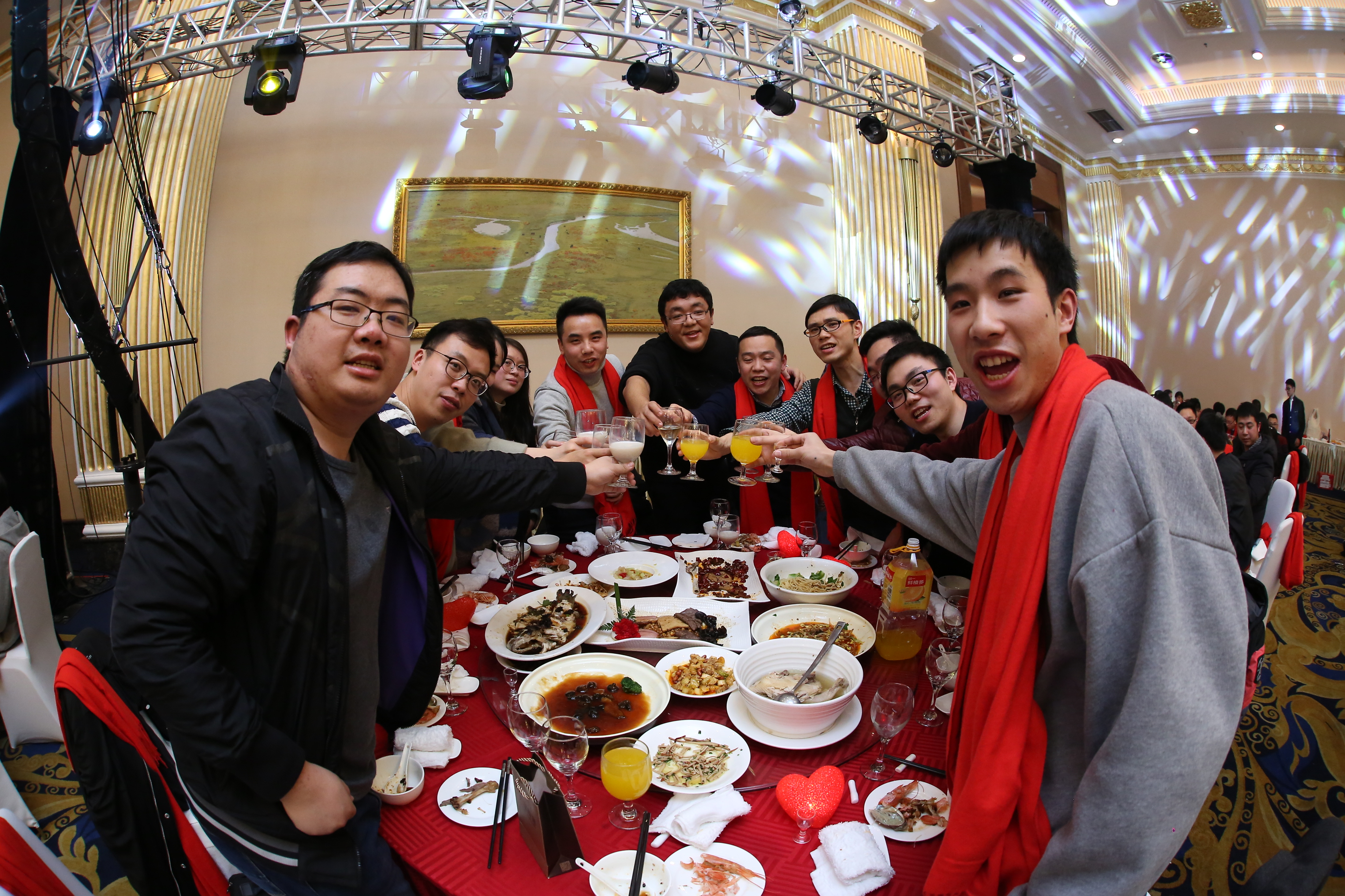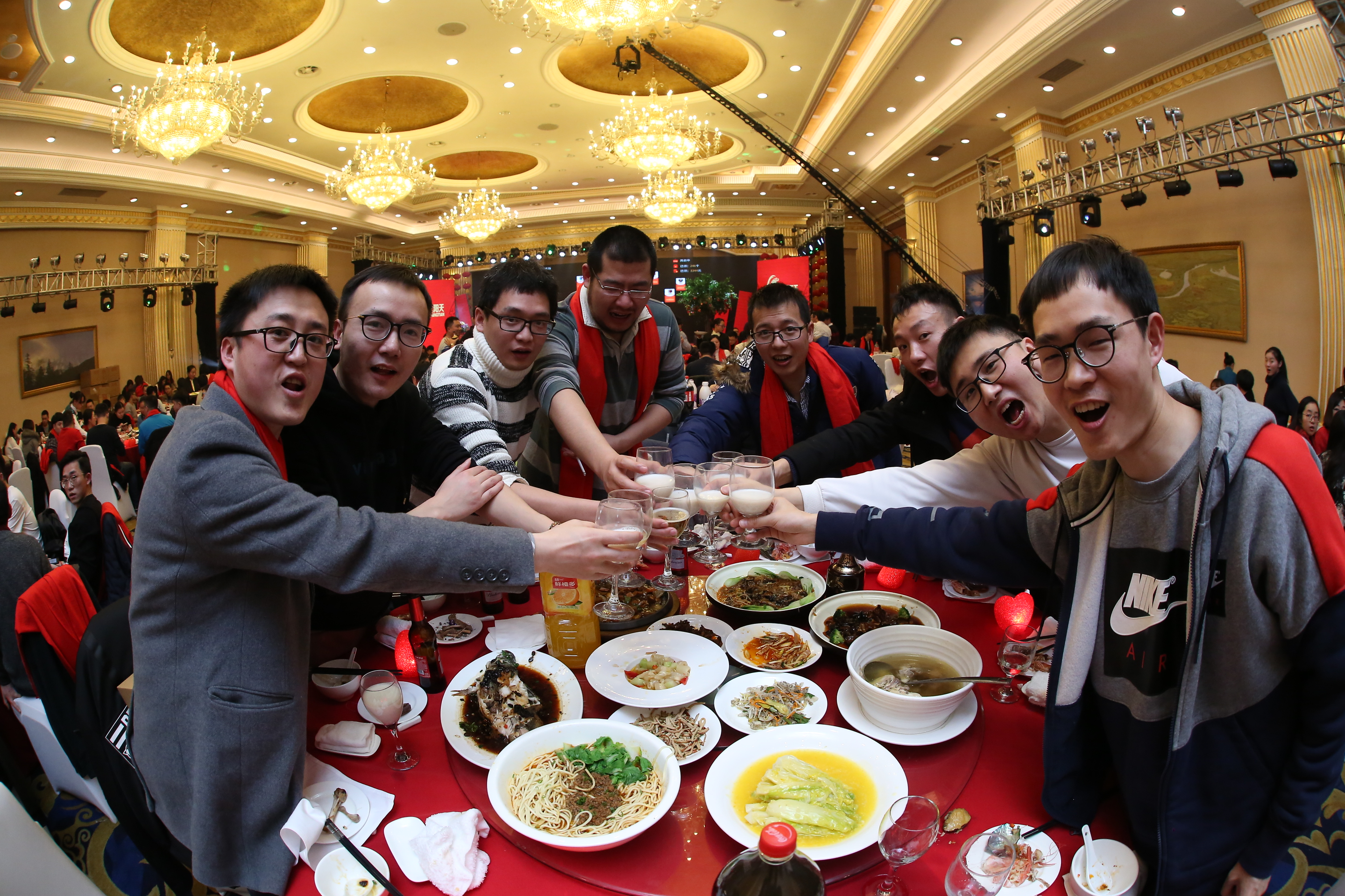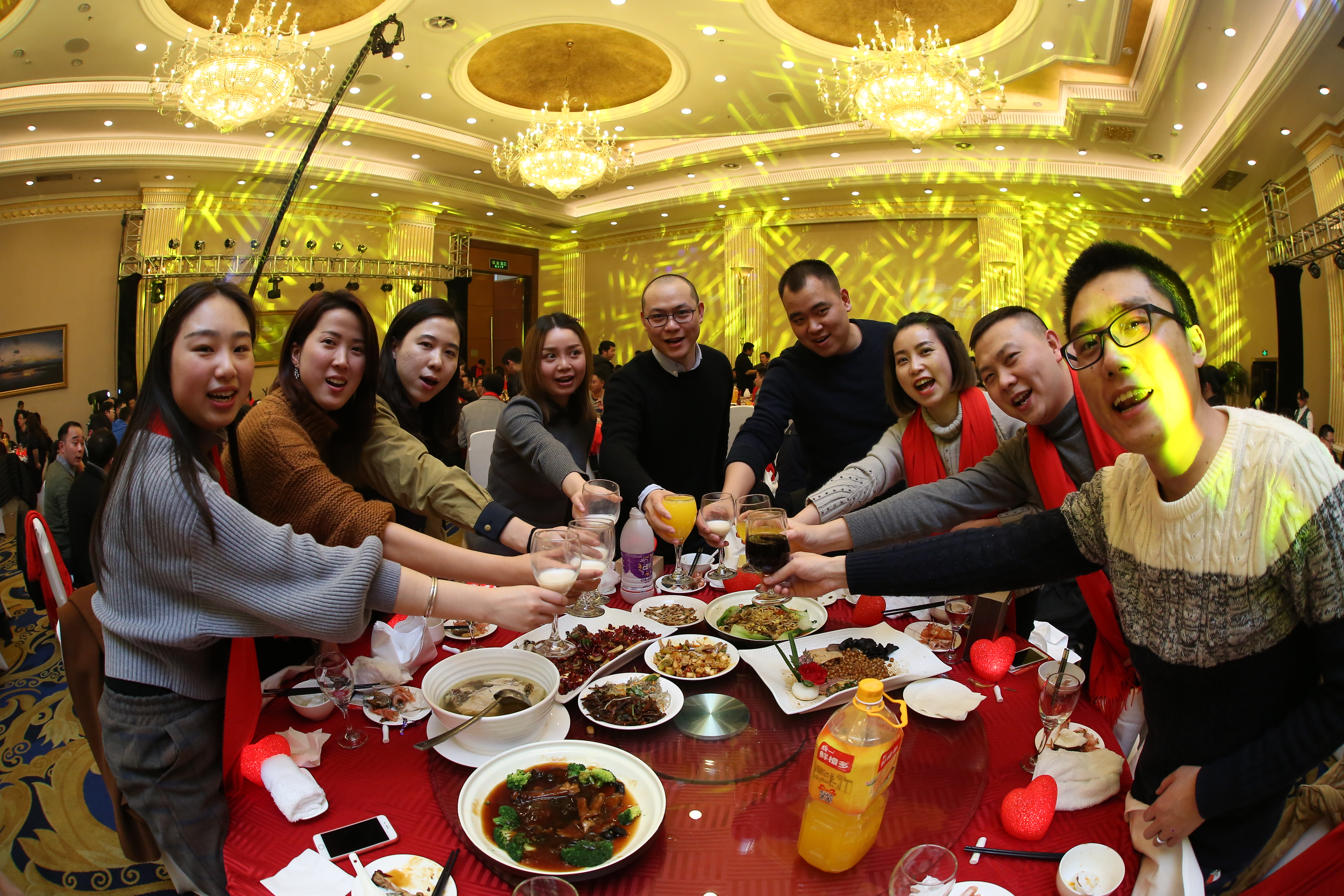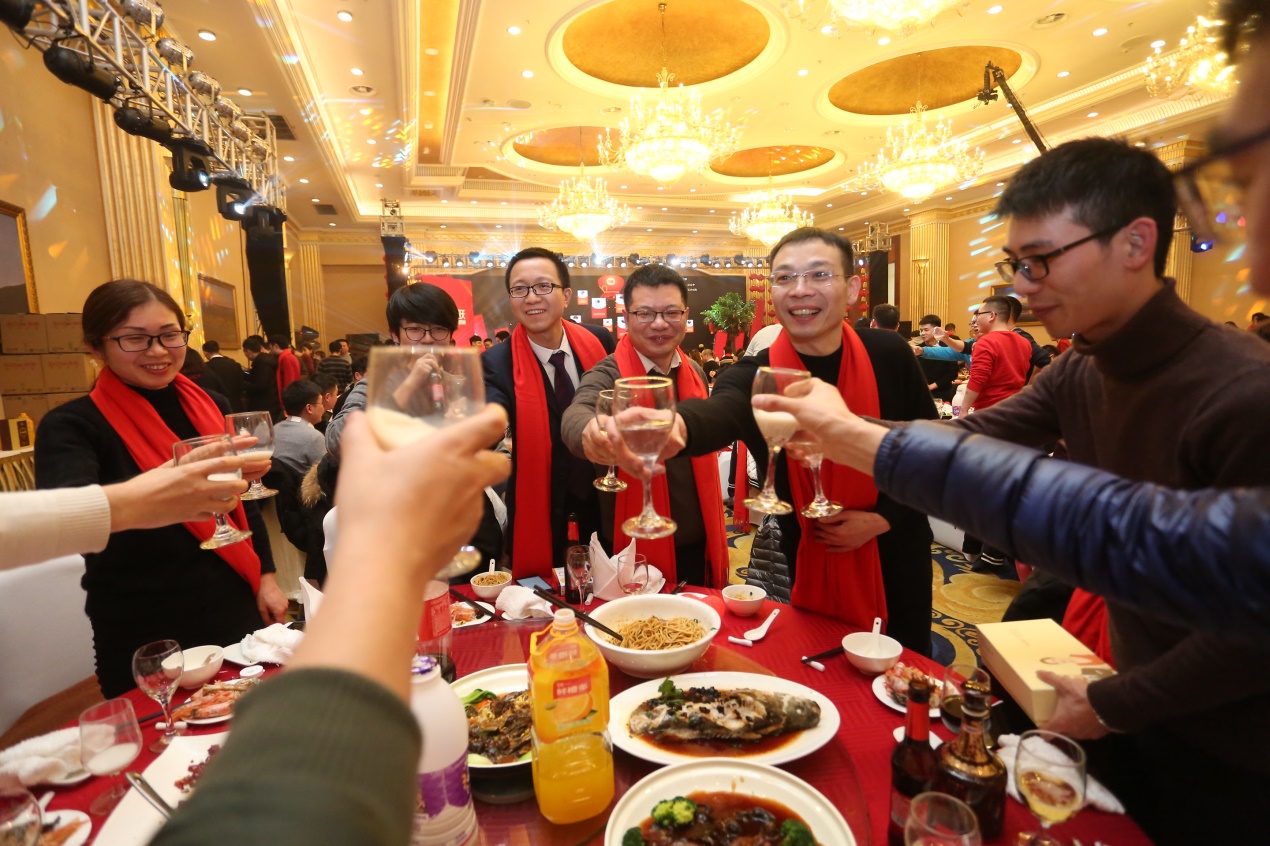 在三位副總共同舉杯致祝酒詞后,晚宴正式開始。珍饈美酒,接踵而至,領(lǐng)導(dǎo)與員工們觥籌交錯(cuò),酣暢淋漓。沒有往日嚴(yán)肅的工作氣氛,而是像朋友家人一樣把酒言歡,臉上洋溢著喜悅的笑容,這一刻我們都無(wú)比幸福。在其樂融融的氛圍下,2018年年會(huì)圓滿落下了帷幕。